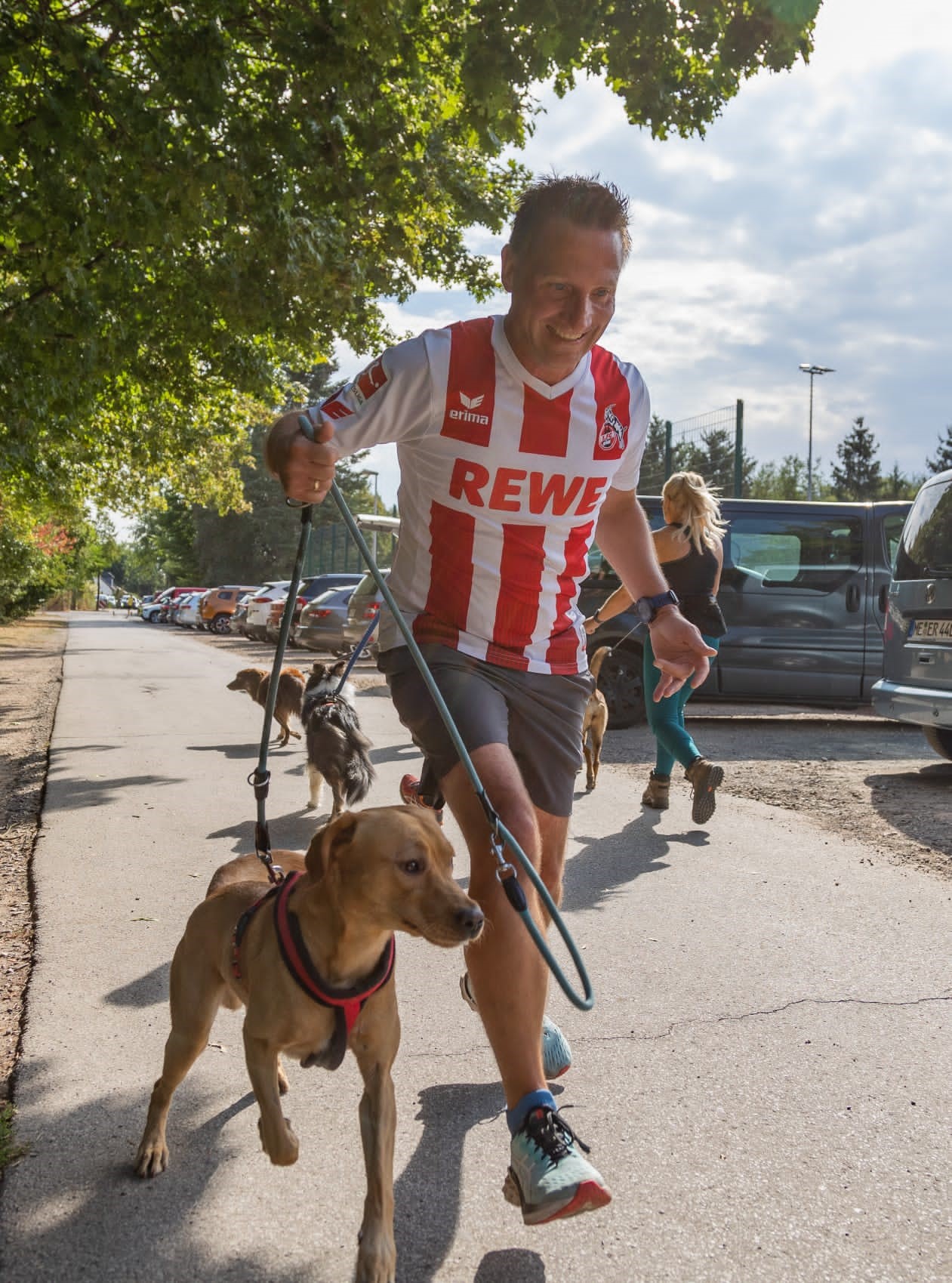 Die ganze Vielfalt des FC Straberg spiegelte sich am ersten September-Wochenende. Sonntags kickten unter anderem die jüngsten Nachwuchsfußballer der renommierten Clubs Viktoria Köln, Wattenscheid 09 und Bayer Uerdingen im herrlichen Walddorfstadion, das tags zuvor zum Schauplatz einer höchst außergewöhnlichen Sportveranstaltung geworden war: Insgesamt machten beim ersten 6-Pfoten-Lauf 30 Gespanne aus Mensch und Hund mit.