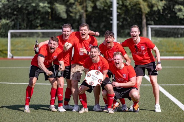 Der FC Straberg hat vorzeitig den Titelgewinn in der Kreisliga B und damit den Aufstieg in die A-Liga klargemacht. Der 7:1-Sieg gegen TuS Grevenbroich II vor der Rekordkulisse von etwa 300 Zuschauern im Walddorfstadion mündete am Sonntag in eine rauschende Meisterfeier.